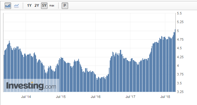 The interest rate which most influences mortgages is the 10 yr treasury which has increased nearly 200 basis points since it’s bottom in the summer of 2016. The latest 30-year mortgage rate per investing.com is now at 5.05% a huge jump from the 3.6% two years ago.